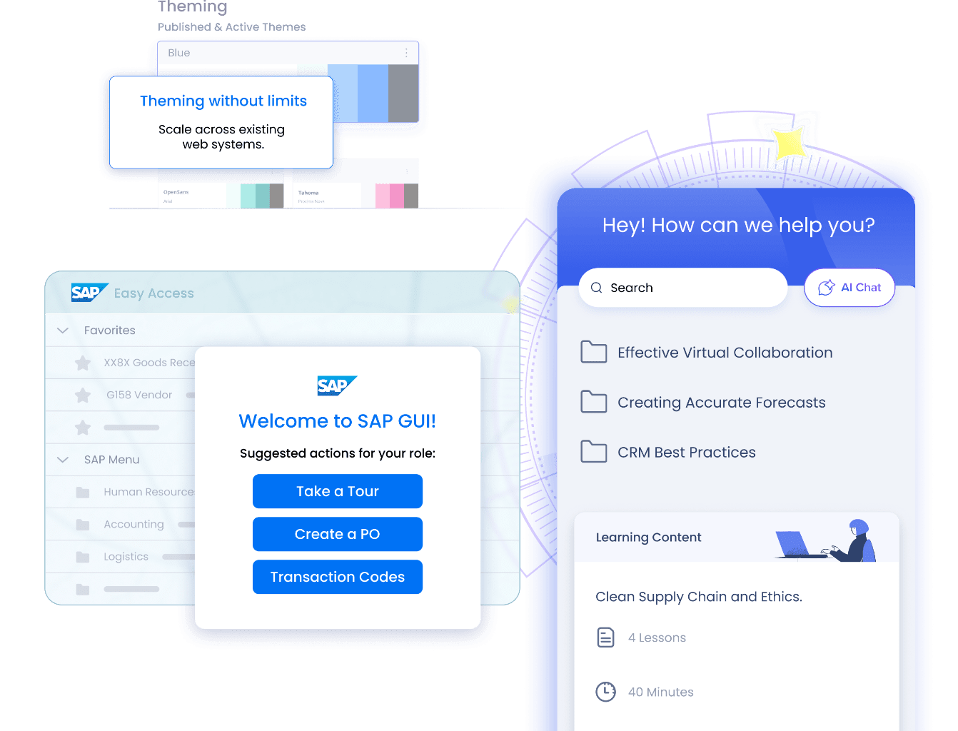 Discover how WalkMe’s all-new digital learning solution transforms how employees learn, grow, and build lasting proficiency—right where work happens. Plus, see what’s new for digital adoption, including more powerful desktop guidance building for SAP GUI, expanded Theming, and more flexible Contextual AI Assistance to help teams scale and personalize guidance with ease.